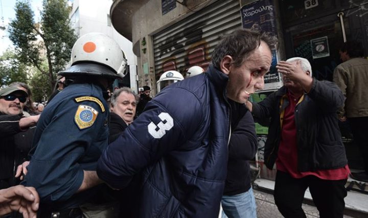 Άγρια, ωμή και απρόκλητη επίθεση και ξύλο με γκλομπς, με αποτέλεσμα 5 τραυματίες (μεταξύ των οποίων ο φωτορεπόρτερ Άγγελος Μπαράι) καθώς και 5 συλλήψεις μελών της ΛΑ.Ε δέχθηκαν οι αγωνιστές του κινήματος κατά των πλειστηριασμών από τα ΜΑΤ.