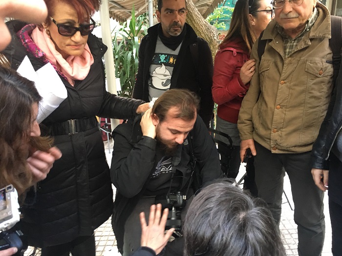 Επίσης οι αστυνομικοί σήκωσαν στα χέρια και πέταξαν κάτω μία αγωνίστρια του κινήματος, που κατάφερε να περάσει τον αστυνομικό κλοιό έξω από το συμβολαιογραφείο.