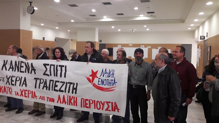 Οι πολίτες θα περιφρουρήσουν τον ιδρώτα τους με το σύνθημα ”Κανένα σπίτι στα χέρα τραπεζίτη ή στα χέρια του μνημονιακού κράτους”.