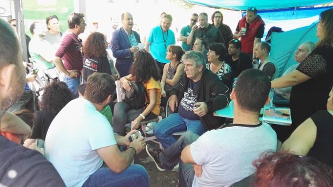 Η ΛΑ.Ε και πάλι, μετά τον Παν. Λαφαζάνη, με Δ. Στρατούλη αυτή τη φορά στο Κέντρο Αγώνα Απολυμένων Εργαζομένων των Δήμων.