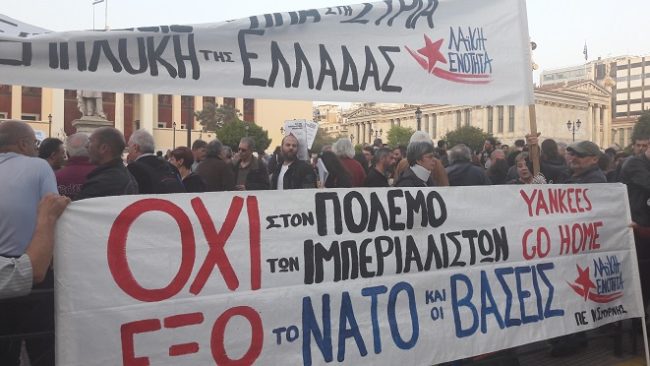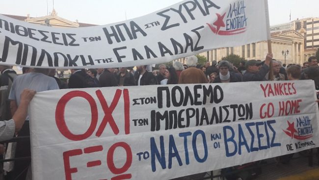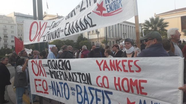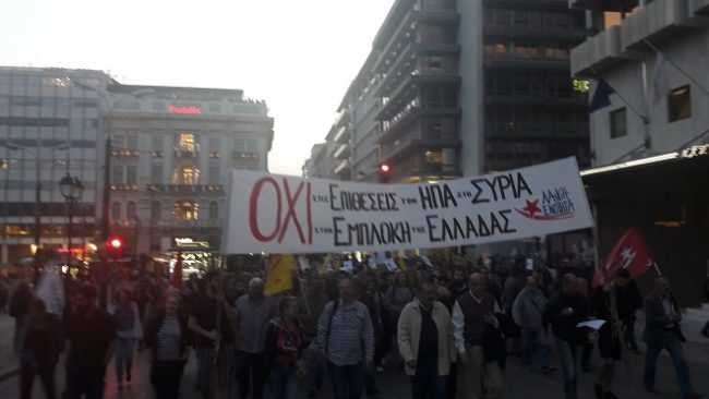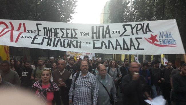 Αντιπολεμική – αντιιμπεριαλιστική συγκέντρωση ενάντια στους αμερικανο-δυτικούς και ισραηλινούς πολεμικούς τυχοδιωκτισμούς πραγματοποιήθηκε σήμερα το απόγευμα στα Προπύλαια, την οποία ακολούθησε μεγάλη, μαζική και αγωνιστική πορεία από την Σταδίου και την Βασ. Σοφίας προς την αμερικανική πρεσβεία.