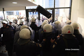 β) Η κινητοποίηση μπροστά στο συμβολαιογραφικό γραφείο που προχώρησε στην υλοποίηση του πρώτου ηλεκτρονικού πλειστηριασμού είχε τον σαφή χαρακτήρα της καταγγελίας της διαδικασίας των ηλεκτρονικών πλειστηριασμών, μιας διαδικασίας που, για επικοινωνιακούς λόγους, ξεκινάει μεν από πλειστηριασμούς ακινήτων για μεγάλα χρέη, αλλά πολύ γρήγορα θα οδηγήσει στην υφαρπαγή της στέγης και της περιουσίας των θυμάτων της κρίσης και των μνημονιακών πολιτικών, με ένα απλό «κλικ» στον υπολογιστή. Αλλωστε χαρη και στην εξαγγελθείσα κινητοποίηση μας αναβληθηκε για τις 14/2 ο πρώτος ηλεκτρονικος πλειστηριασμός πρωτης κατοικιας 81 τ.μ. και καταστηματος αξιας 200.000 ευρω για χρεος 300.000
