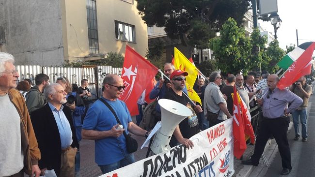 Αγωνιστική διαμαρτυρία πραγματοποίησαν σήμερα το απόγευμα η «Λαϊκή Ενότητα», παλαιστινιακές οργανώσεις και η «Επιτροπή Αλληλεγγύης στην Συρία» έξω από την αμερικανική πρεσβεία στην Αθήνα.