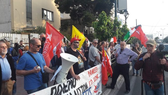 Την ώρα που η ΛΑ.Ε πραγματοποιούσε την διαμαρτυρία έξω από την αμερικανική πρεσβεία, το ΚΚΕ διοργάνωνε συγκέντρωση στο Σύνταγμα με ομιλητή τον Δ. Κουτσούμπα, την οποία ακολούθησε πορεία προς την αμερικανική πρεσβεία.