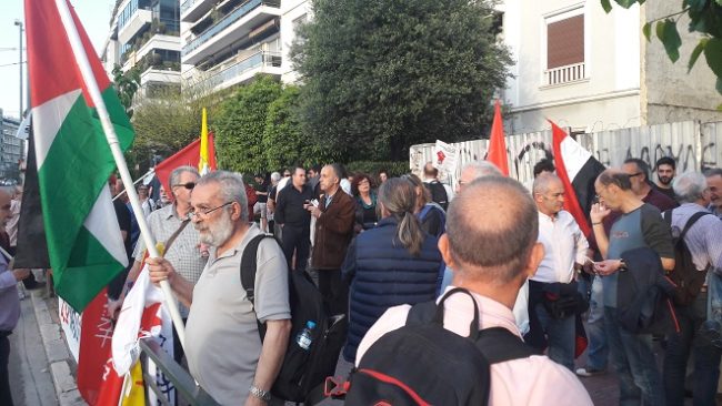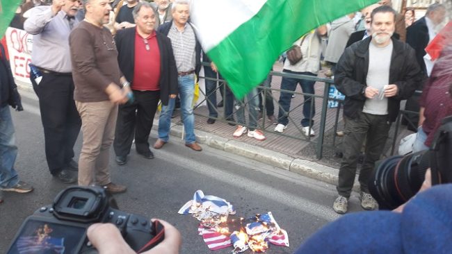 Διαμαρτυρία πραγματοποίησαν ΛΑ.Ε, Παλαιστίνιοι, «Επιτροπή για Συρία» στην πρεσβεία των ΗΠΑ