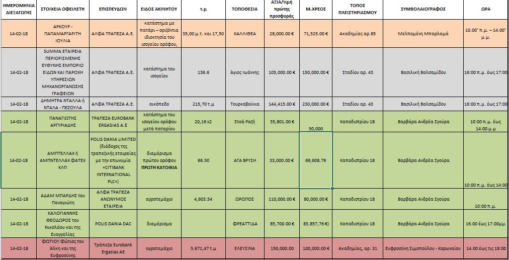 Από τον πίνακα των ηλεκτρονικών πλειστηριασμών που επισυνάτουμε φαίνονται καθαρά τα ψέματα της κυβέρνησης και κυρίως των Τσίπρα – Κοντονή – Τσακαλώτου, οι οποίοι ισχυρίζονται ότι δεν εκπλειστηριάζονται πρώτες κατοικίες ούτε ακίνητα αξίας μικρότερης των 300.000 €.