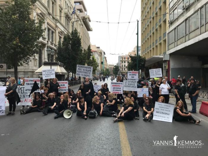 Πολλές από τις συμμετέχουσες σύζυγοι θανόντων επί δύο σχεδόν ώρες έκανα καθιστική διαμαρτυρία στο κράσπεδο της οδού Σταδίου και εν συνεχεία πορεύτηκαν προς το Μέγαρο Μαξίμου.