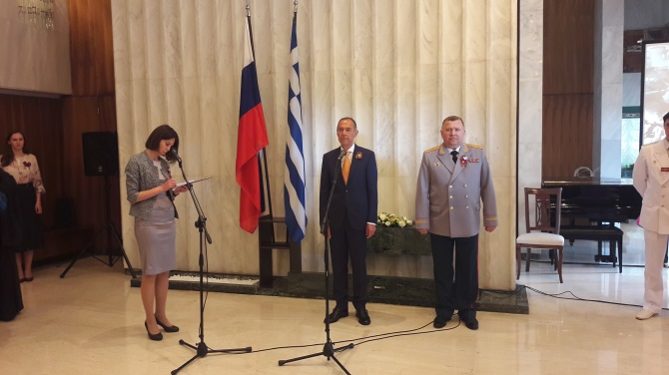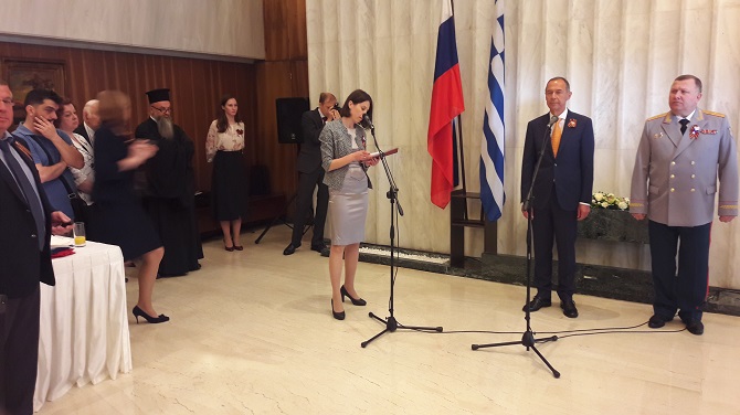 Με δεξίωση που πραγματοποιήθηκε στην Ρώσικη πρεσβεία στην Αθήνα τίμησε σήμερα η Ρώσικη Ομοσπονδία στην Ελλάδα την μεγάλη αντιφασιστική νίκη που ολοκληρώθηκε στις 9 Μαΐου 1945, με την πτώση του Βερολίνου και την συνθηκολόγηση της Ναζιστικής Βέρμαχτ μετά από σκληρές μάχες και την προέλαση του ηρωικού Σοβιετικού στρατού.