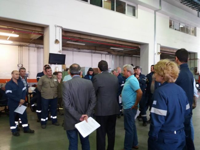Στη συνέχεια η αντιπροσωπεία της ΛΑ.Ε μίλησε με τους εργαζόμενους στη συντήρηση και στους θαλάμους ελέγχου των μονάδων στη μετατροπή και στη διύλιση.