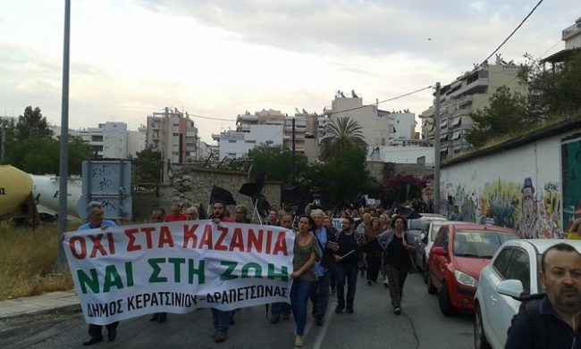 Ο λαός του Κερατσινίου και της Δραπετσώνας μίλησε με την μεγάλη του συγκέντρωση στην Πλατεία Ευγένειας και την πορεία προς τον Υδατόπυργο στα Λιπάσματα και την είσοδο των εγκαταστάσεων της One Oil, ενάντια στα καζάνια, την δυσοσμία και στην τσιμεντόσκονη το Σάββατο στις 5 του Μάη.