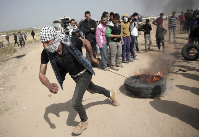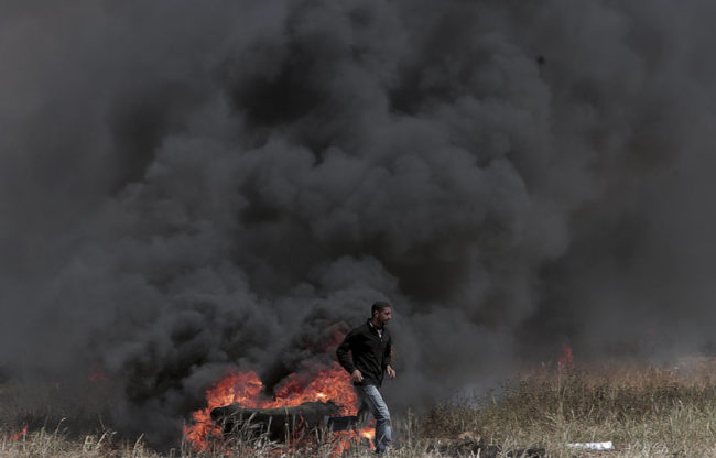Οι διαδηλωτές έβαλαν χθες φωτιά σε λάστιχα για να δημιουργήσουν ένα προπέτασμα καπνού και να προστατευθούν από τους Ισραηλινούς ελεύθερος σκοπευτές, καθώς χιλιάδες διαδηλωτές συγκεντρώθηκαν σε πέντε σημεία της μήκος 65 χλμ μεθορίου μεταξύ της Λωρίδας της Γάζας και του Ισραήλ και πετούσαν πέτρες και βόμβες μολότωφ. Μεταξύ των νεκρών ήταν κι ένας 16χρονος, ενώ τραυματίστηκαν πάνω από 1.300 άνθρωποι.