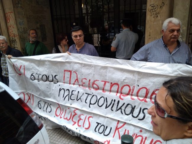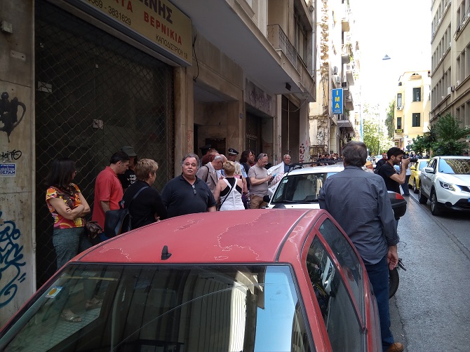 Το κίνημα κατά των πλειστηριασμών και η ΛΑ.Ε, σήμερα, Τετάρτη, 09/05/2018, διοργάνωσαν αγωνιστικές συγκεντρώσεις διαμαρτυρίας κατ’ αρχή στη συμβολή των οδών Ακαδημίας και Ζωοδόχου Πηγής, δίπλα στα γραφεία του Συμβολαιογραφικού Συλλόγου Αθηνών και Νήσων και εν συνεχεία σε δυο συμβολαιογραφικά γραφεία, ένα στην οδό Ακαδημίας 62 και δύο στην οδό Καποδιστρίου 13, που πραγματοποιούσαν ηλεκτρονικούς πλειστηριασμούς λαϊκής κατοικίας και περιουσίας.