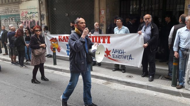 Σε μια αιφνιδιαστική κίνηση προχώρησε η Λαϊκή Ενότητα, αφού την τελευταία στιγμή άλλαξε τον τόπο συγκέντρωσης ενάντια στους πλειστηριασμούς.