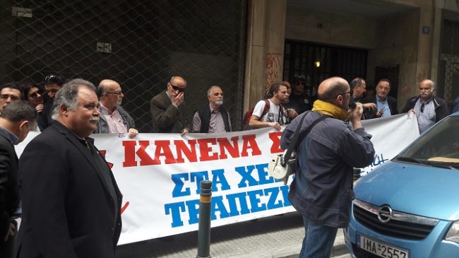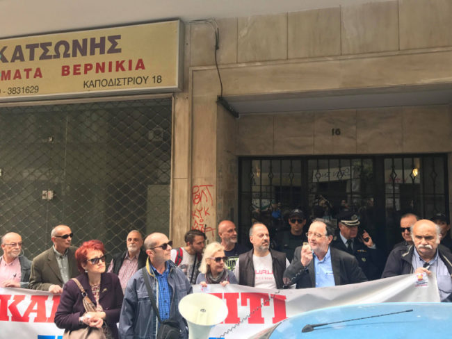 Ωστόσο πραγματοποίησαν συγκέντρωση διαμαρτυρίας την ίδια ώρα σε συμβολαιογραφείο στην οδό Καποδιστρίου 18, που πραγματοποιούσε κι αυτό ηλεκτρονικούς πλειστηριασμούς.