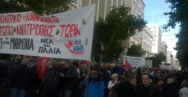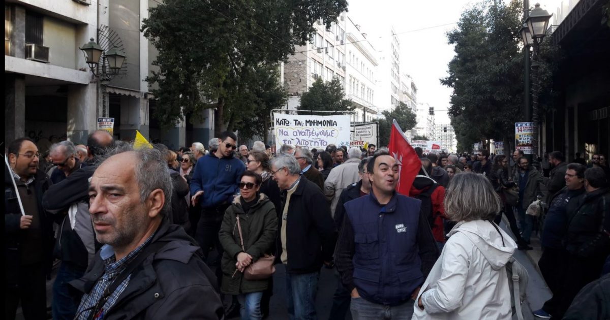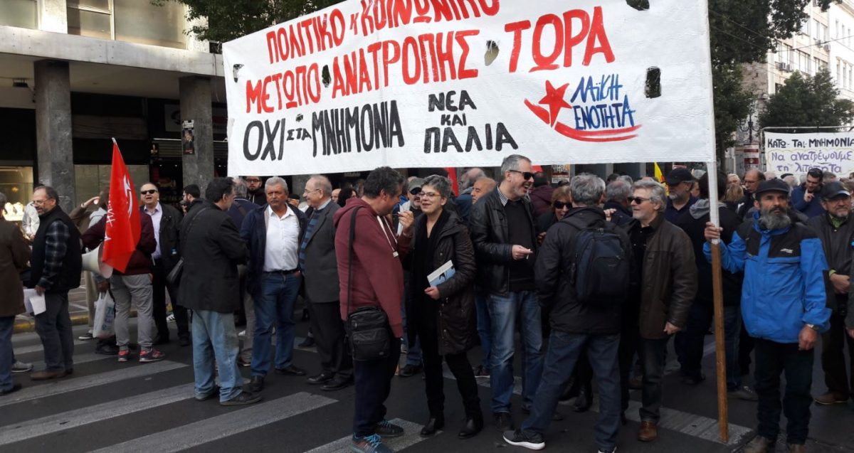 Η ΛΑ.Ε. πραγματοποίησε συγκέντρωση στην Αθήνα στα Χαυτεία, το ΠΑΜΕ στην Ομόνοια και η ΑΝΤΑΡΣΥΑ στο Μουσείο.