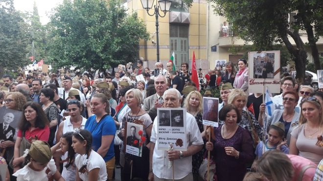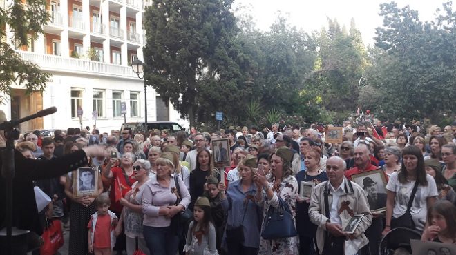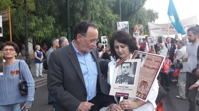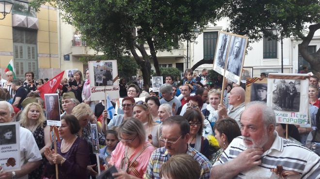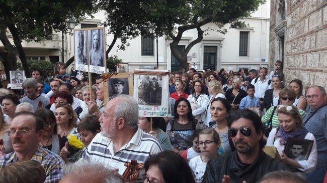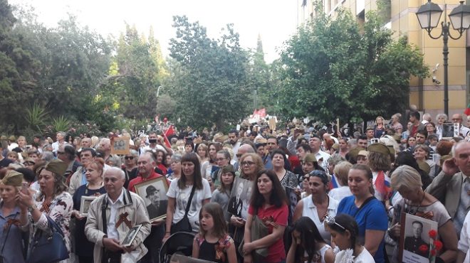 Με επικεφαλής τον πρέσβη της Ρωσίας Andrei Maslov στην Αθήνα πραγματοποιήθηκε μεγάλη πορεία χιλιάδων πολιτών στο κέντρο της Αθήνας που ξεκίνησε από την Αγία Τριάδα στην Φιλελλήνων, προς τιμήν της μέρας της αντιφασιστικής νίκης και της «αθάνατης στρατιάς» και η οποία κατέληξε στο Σύνταγμα με μεγάλη συναυλία.