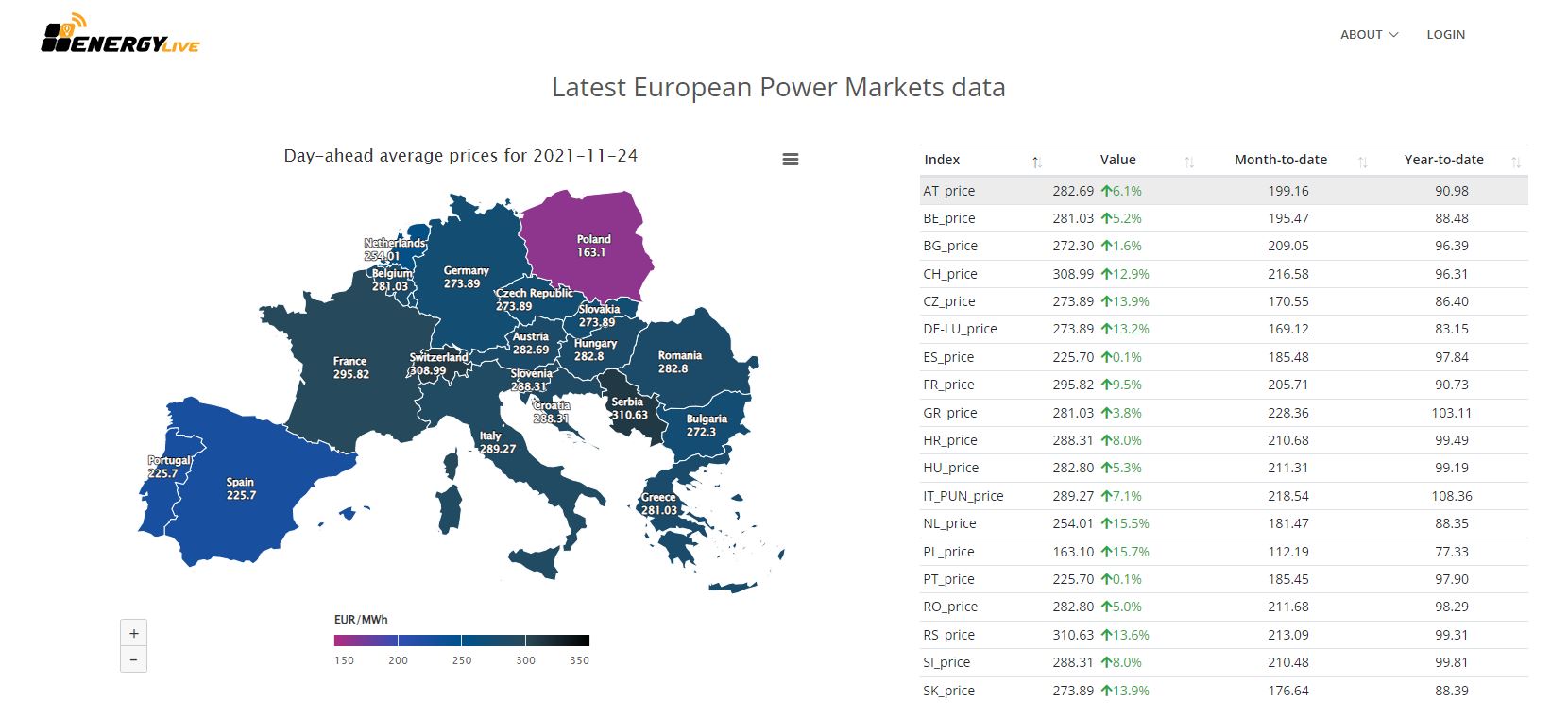 Πάντως, ακριβότερη όλων είναι η αγορά της Σερβίας με 310,63 ευρώ/MWh και ακολουθεί η Ελβετία με 308,99 ευρώ/MWh.