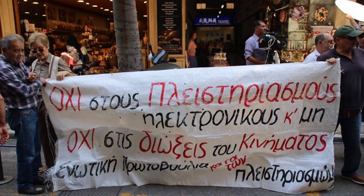 Äéáìáñôõñßá ôçò ËáúêÞò Åíüôçôáò êáé óõëëïãéêïôÞôùí ãéá ôïõò çëåêôñïíéêïýò ðëåéóôçñéáóìïýò áðü ôï Äçìüóéï, óôá ãñáöåßá ôçò ÁÁÄÅ ôçí ÐáñáóêåõÞ 27 Áðñéëßïõ 2018. (EUROKINISSI/ÃÉÙÑÃÏÓ ÊÏÍÔÁÑÉÍÇÓ)