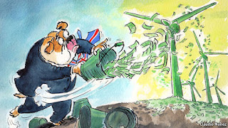 Αυτά βέβαια δεν μας τα λένε τώρα. Αυτά θα τα δούμε εμείς μετά! Τώρα δουλεύει το παραμύθι. Και δουλεύει στο φουλ! Με μύθους, ψέμματα κι απατηλές υποσχέσεις, με χάντρες και καθρεφτάκια προς τους ιθαγενείς. Το μόνο που δεν μας είπαν ακόμη είναι το πόσο τυχεροί θα ‘ναι οι βοσκοί μας που θα έχουν τεράστιους ανεμιστήρες να δροσίζονται στα βουνά!