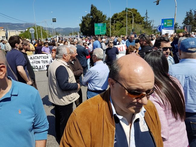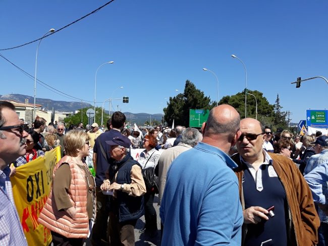 Η συγκέντρωση ολοκληρώθηκε με μαζική και αγωνιστική πορεία, που πραγματοποιήθηκε μετά από κάλεσμα της Επιτροπής Αγώνα Κηφισιάς. Η πορεία κατευθύνθηκε αρχικά προς το κράσπεδο της γέφυρας Βαρυμπόμπης και εν συνεχεία προς τα γραφεία της παραχωρησιούχου εταιρείας «ΝΕΑ ΟΔΟΣ», με κεντρικό σύνθημα «Εεε, οοο, πάρτε τα διόδια και φύγετε από ‘δώ».