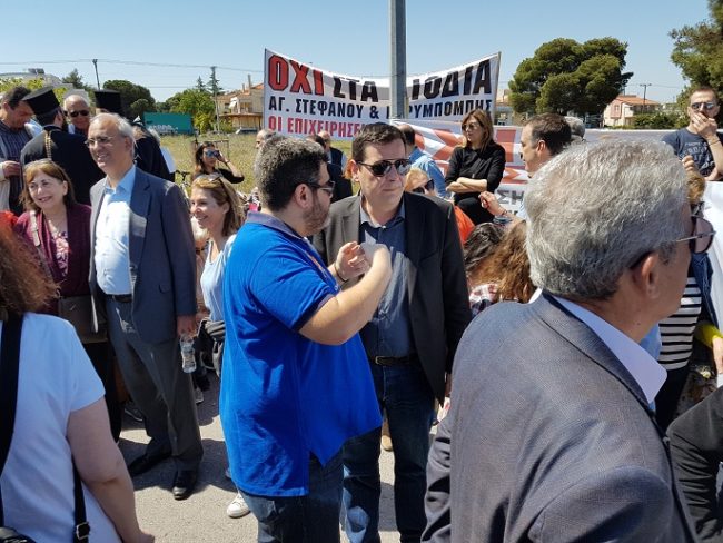 Πολύ μεγάλη συγκέντρωση χιλιάδων πολιτών πραγματοποιήθηκε σήμερα, Κυριακή 22/04/2018, στη γέφυρα της Βαρυμπόμπης. Την συγκέντρωση διοργάνωσαν τα Δημοτικά Συμβούλια Διονύσου και Κηφισιάς και συμμετείχαν σε αυτήν και πολλά τοπικά κινήματα, επιτροπές αγώνα και αυτοδιοικητικές αγωνιστικές κινήσεις, με αίτημα να αποτραπεί οριστικά η τοποθέτηση κάθε μορφής διοδίων (πλευρικών, ηλεκτρονικών κλπ.) στον Άγιο Στέφανο και την Βαρυμπόμπη.