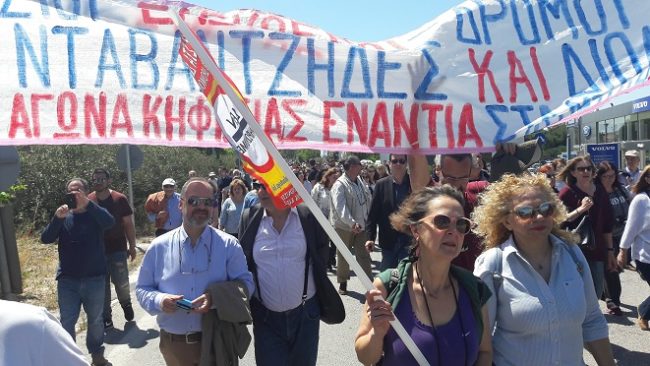 Στη συγκέντρωση κάλεσε και συμμετείχε με μαζικό μπλοκ διαδηλωτών η Επιτροπή Αγώνα Κηφισιάς, με κεντρικό σύνθημα «Όχι στα διόδια – Δημόσιοι ελεύθεροι δρόμοι χωρίς νταβατζήδες και διόδια – Ενάντια στα μέτρα ΔΝΤ – ΕΕ – κυβέρνησης».