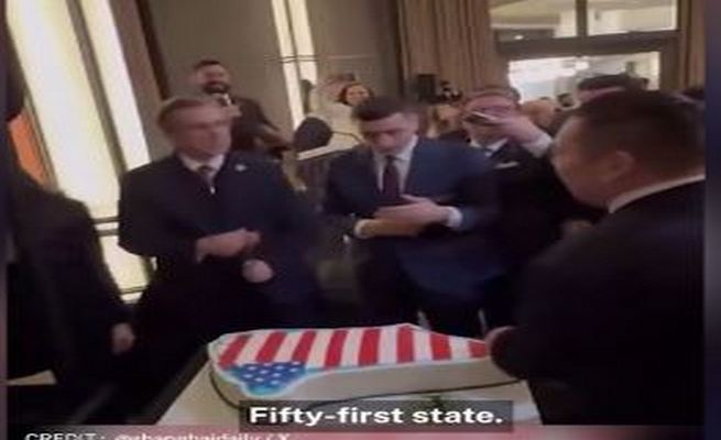 Πάνω προχτές Ρεπουμπλικάνοι γερουσιαστές, ετοίμασαν κι έκοψαν προς τιμή του Τραμπ, τούρτα … στο σχήμα της Γροιλανδίας με αμερικανική σημαία!