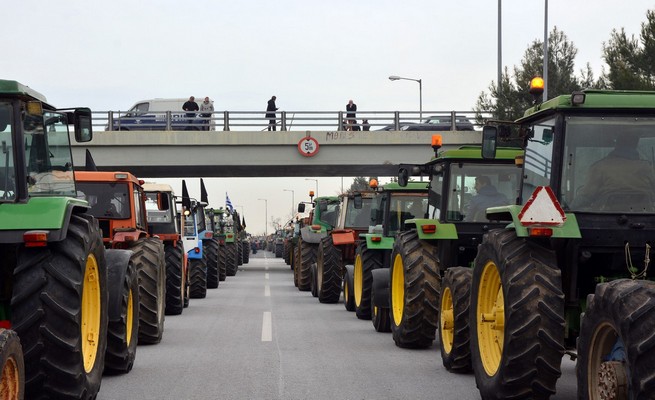 Αγρότες με τα τρακτέρ τους έχουν αποκλείσει την Εθνική οδό Αθηνών – Θεσσαλονίκης στο κόμβο της Νίκαιας, Δευτέρα 28 Ιανουαρίου 2019. Αναμένονται να καταφθάσουν και οι αγρότες της Καρδίτσας ώστε να στηθεί το «μπλόκο» στην εθνική οδό, σύμφωνα με απόφαση που έχουν πάρει οι αγρότες της Πανελλαδικής επιτροπής των μπλόκων. ΑΠΕ-ΜΠΕ /ΑΠΕ-ΜΠΕ/ΑΠΟΣΤΟΛΗΣ ΝΤΟΜΑΛΗΣ