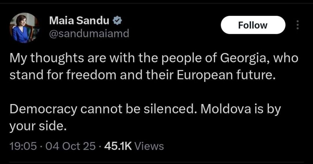 ‍♂️ Από την άλλη (κάτω ) ο … “Πινοσέτ με φούστα” Μάγια Σάντου που μόλις έκλεψε τις εκλογές στη Μολδαβία, έσπευσε να “στηρίξει” τους … ειρηνικούς μαχητές της ελευθερίας στη Γεωργία