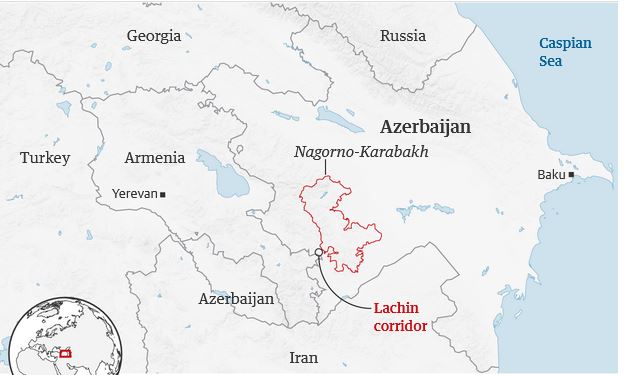 Ωστόσο, οι Αρμένιοι κατηγορούν τους Αζέρους ότι τους προηγούμενους μήνες είχαν μπλοκάρει το διάδρομο με αποτέλεσμα να υπάρχουν μεγάλες ελλείψεις σε τρόφιμα, φάρμακα και είδη πρώτης ανάγκης για τον πληθυσμό του Karabakh.