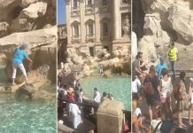 Ρώμη-Ατάραχη τουρίστρια στη Φοντάνα ντι Τρέβι γεμίζει νερό το μπουκάλι της