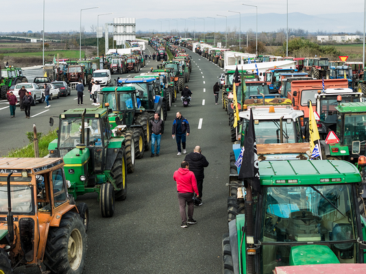 Στην Συγγρού στο ύψος του ΦΙΞ συγκεντρώθηκαν πολίτες και πραγματοποιούν αυτοκινητοπομπή κρατώντας ρωσικές και ελληνικές σημαίες