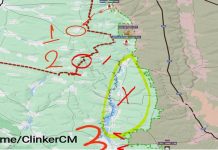 Ρωσικές Δυνάμεις από το απόγευμα σφυροκοπούν την Cherneshchyna (κόκκινος κύκλος 1) και δοκιμάζουν την άμυνα της. Πιθανότερος στόχος είναι να προελάσουν προς την Olhivka...