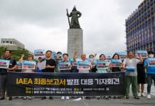 Ν.Κορέα-Ακτιβιστές διαδηλώνουν για την απόρριψη ραδιενεργού ύδατος της Φουκουσίμα στη θάλασσα