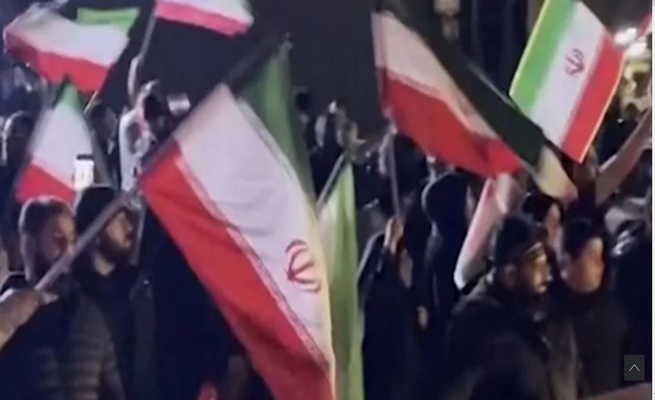 Το πλήθος συγκεντρώθηκε στην πλατεία Ενγκελάμπ στην Τεχεράνη κρατώντας ιρανικές σημαίες και πορτρέτα του Μοζτάμπα Χαμενεΐ, γιου του Αλί Χαμενεΐ, ο οποίος κατείχε προηγουμένως τη θέση αυτή και σκοτώθηκε την πρώτη ημέρα των αμερικανοϊσραηλινών πληγμάτων εναντίον του Ιράν.