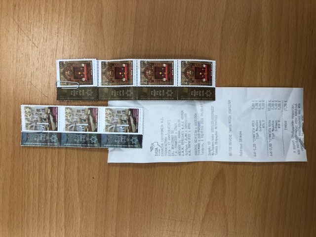 Πρόσφατα αγόρασα μερικά γραμματόσημα στο Ταχυδρομείο της Καλλιθέας, μια φωτογραφία των οποίων μπορείτε να δείτε μαζί με αυτό το άρθρο. Το Ταχυδρομείο δεν είχε άλλα! Απεικονίζουν συναγωγές στα Ιωάννινα και στην Αθήνα. Έτσι, όσοι τα λάβουν θα μπορούσαν κάλλιστα να δουν την Ελλάδα ως προπύργιο του Ιουδαϊσμού. Καμία τέτοια τύχη για τους 120.000 Μουσουλμάνους της