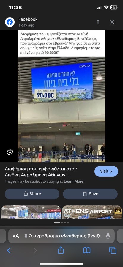 Και στο μεταξύ, κάποιοι άπληστοι Έλληνες είναι πρόθυμοι να πουλήσουν σε Ισραηλινούς: για παράδειγμα, ο Όμιλος Palmo διαφημίζει το μήνυμα: «Μη φύγετε για την πατρίδα χωρίς ένα σπίτι στην