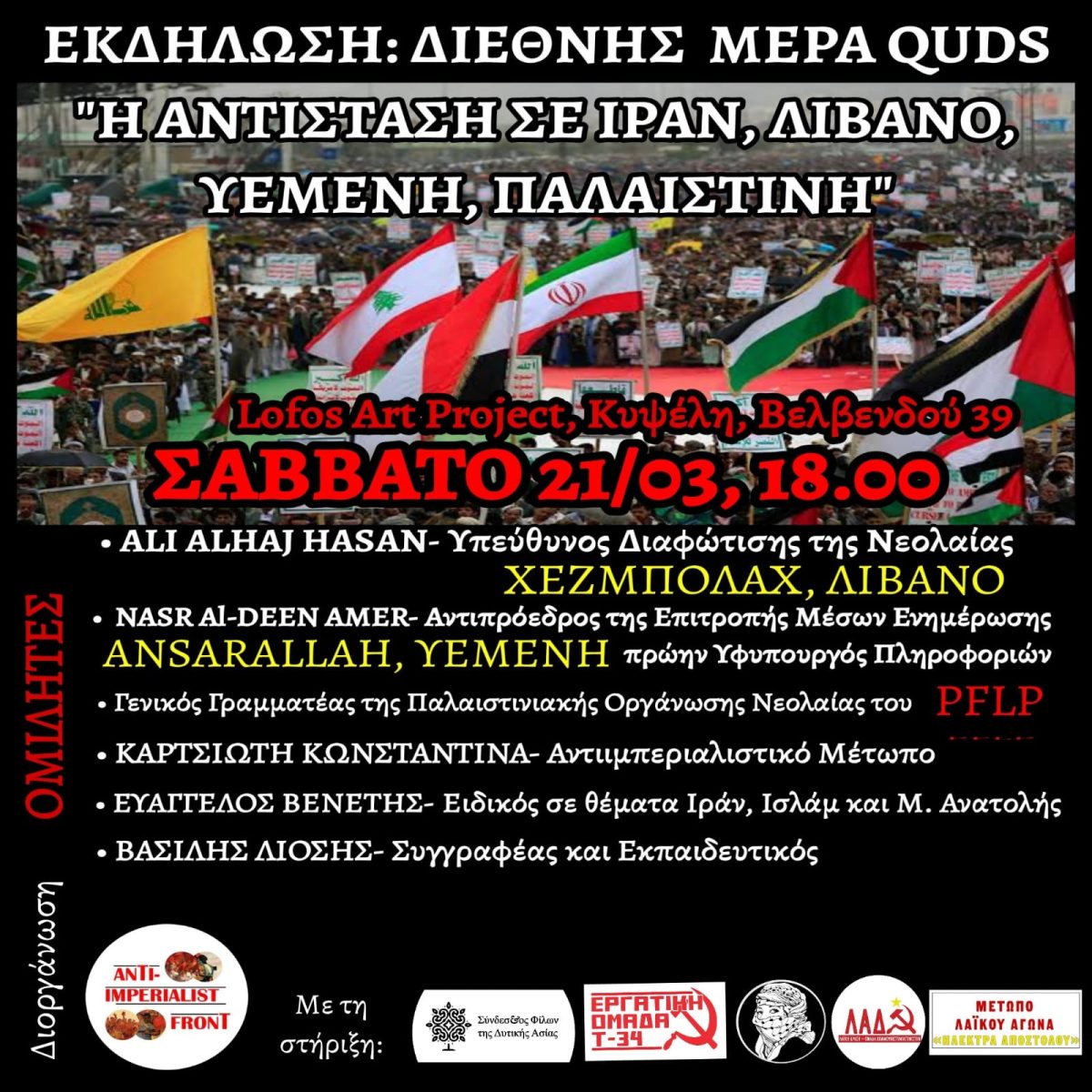 Ως Αντιιμπεριαλιστικό Μέτωπο, σας καλούμε να συμμετάσχετε στην εκδήλωση που θα πραγματοποιήσουμε το Σάββατο 21 Μαρτίου 2026, στο Lofos Art Project, στην Κυψέλη, στις 18:00 με θέμα: