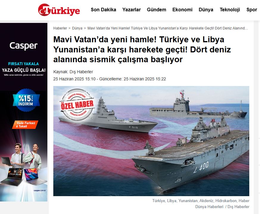 Ειδικότερα, σύμφωνα με την εφημερίδα Turkiye, «καθώς οι εντάσεις στη Μεσόγειο κλιμακώνονται μετά τις κινήσεις της Ελλάδας, ένα σημαντικό βήμα στον τομέα της ενεργειακής συνεργασίας έρχεται από τη συμμαχία Τουρκίας – Λιβύης.