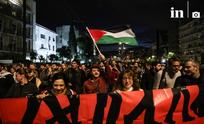 Μαζική η συμμετοχή στην αντιπολεμική πορεία για τη Γάζα