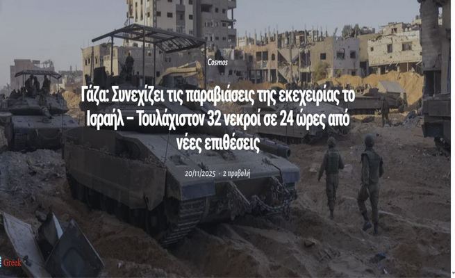 Γάζα: Συνεχίζουν τις παραβιάσεις της εκεχειρίας οι Σιωνιστές δολοφόνοι του Ισραήλ – Τουλάχιστον 32 νεκροί σε 24 ώρες από νέες επιθέσεις