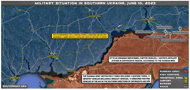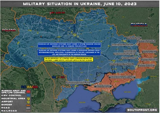 Μεγάλο μέρος του ρωσικού χώρου πληροφοριών ισχυρίστηκε ότι η ουκρανική αντεπίθεση απέτυχε αφού οι ρωσικές δυνάμεις κατέστρεψαν περισσότερο ουκρανικό στρατιωτικό εξοπλισμό που παρείχε η Δύση στις 9 Ιουνίου.