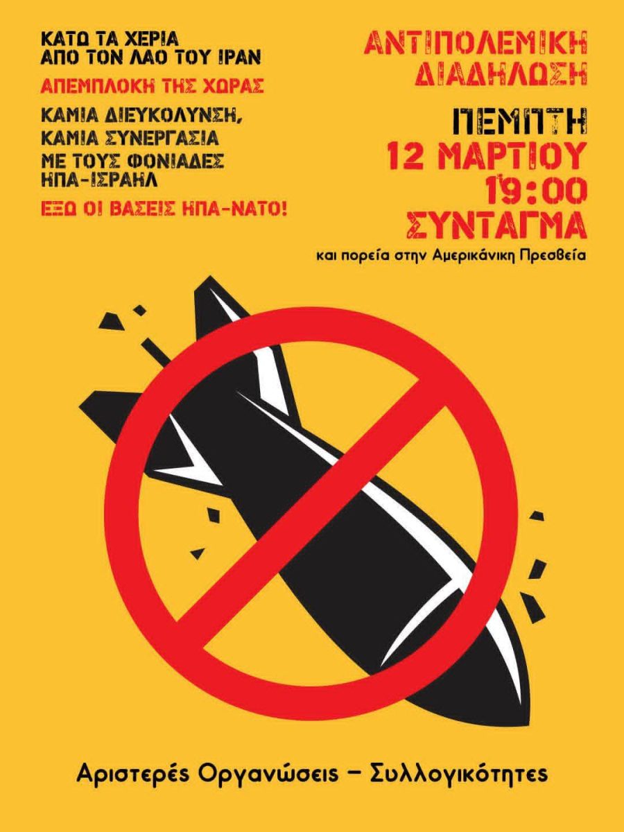 Πέμπτη 12 Μαρτίου 19:00 στο Σύνταγμα