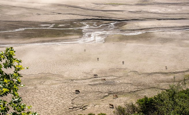 Αύγουστος 2025. Σε σημεία που μέχρι πρότινος καλύπτονταν με νερό από το φράγμα, σήμερα βόσκουν ζώα