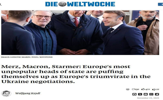 “Μερτς, Μακρόν, Στάρμερ: Οι πιο αντιδημοφιλείς αρχηγοί κρατών της Ευρώπης αυτοπροβάλλονται ως το τρίο της Ευρώπης στις διαπραγματεύσεις για την Ουκρανία.”