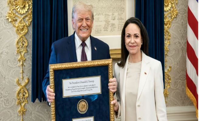 Παρά το πνεύμα αυτό, η Μαρία Ματσάδο παρέδωσε το μετάλλιο Νόμπελ Ειρήνης που της είχε απονεμηθεί το 2025 στον Ντόναλντ Τραμπ κατά τη διάρκεια συνάντησής τους στον Λευκό Οίκο. Ο πρόεδρος χαρακτήρισε την κίνηση «υπέροχη χειρονομία» και ευχαρίστησε προσωπικά τη Ματσάδο, παρουσιάζοντας τη χειρονομία ως δείγμα αμοιβαίου σεβασμού.