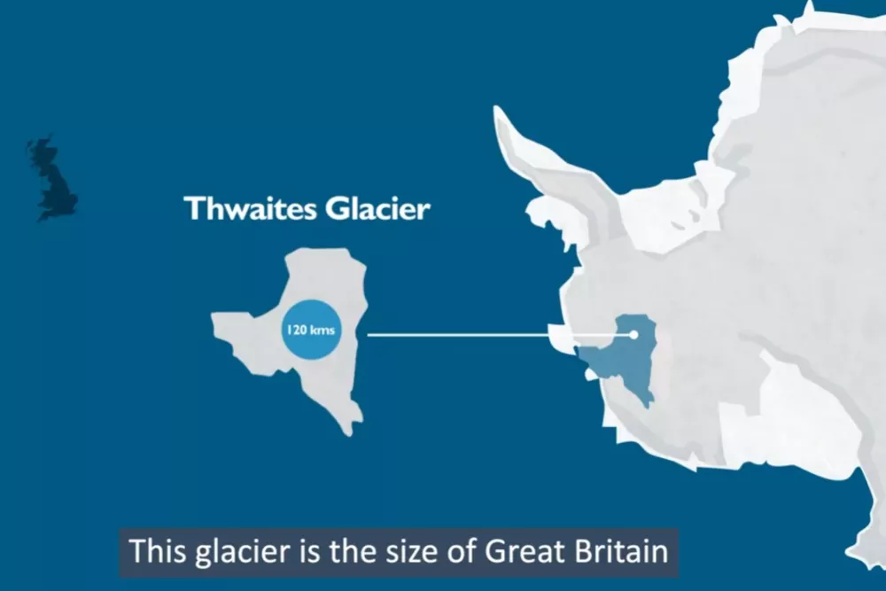 Η αλλαγή στον παγετώνα Thwaites στη Δυτική Ανταρκτική, που μερικές φορές αναφέρεται ως «Παγετώνας της Ημέρας της Κρίσης», κατά τις επόμενες δεκαετίες και αιώνες θα έχει βαθιές επιπτώσεις στην παγκόσμια άνοδο της στάθμης της θάλασσας και στις παράκτιες κοινότητες σε όλο τον κόσμο.