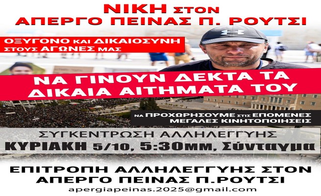 Να στηρίξουμε έμπρακτα τον Π. Ρούτσι, κάνοντας την απεργία πείνας ένα κέντρο αγώνα και συντονισμού.