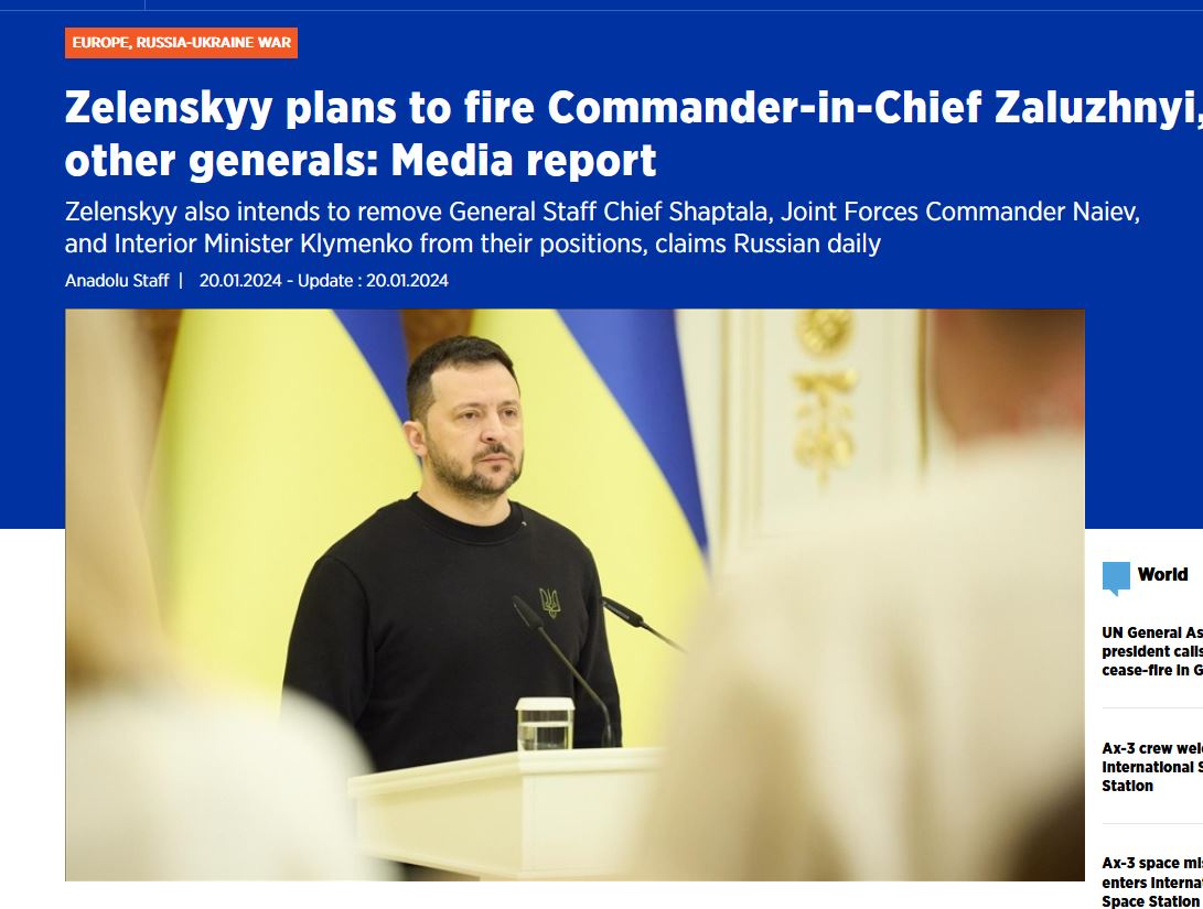 Η ρωσική εφημερίδα MK.ru υποστηρίζει επικαλούμενη πηγές στην Ουκρανία ότι η συνεδρίαση του Σαββάτου (20/1/2024) του Συμβουλίου Εθνικής Ασφάλειας και Άμυνας της Ουκρανίας οδήγησε τον Zelensky να προχωρήσει σε δραματικές αλλαγές στον στρατό και στις δυνάμεις επιβολής του νόμου.