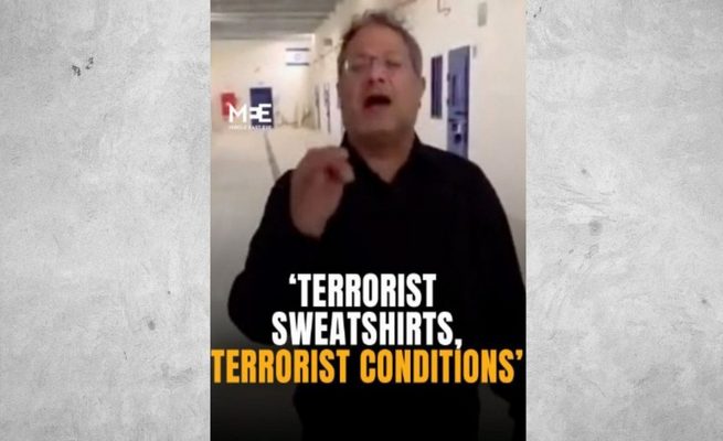 Ο καταδικασμένος από το 2007 για τρομοκρατία υπουργός κατέγραψε σε βίντεο στο X, που έγινε viral, τους φυλακισμένους ακτιβιστές οι οποίοι είναι υποχρεωμένοι να κάθονται οκλαδόν στο πάτωμα, και τις αισχρές δηλώσεις του. Ορισμένο απάντησαν με συνθήματα όπως «Λευτεριά στην Παλαιστίνη».